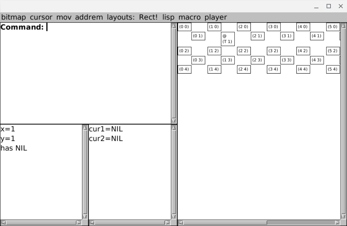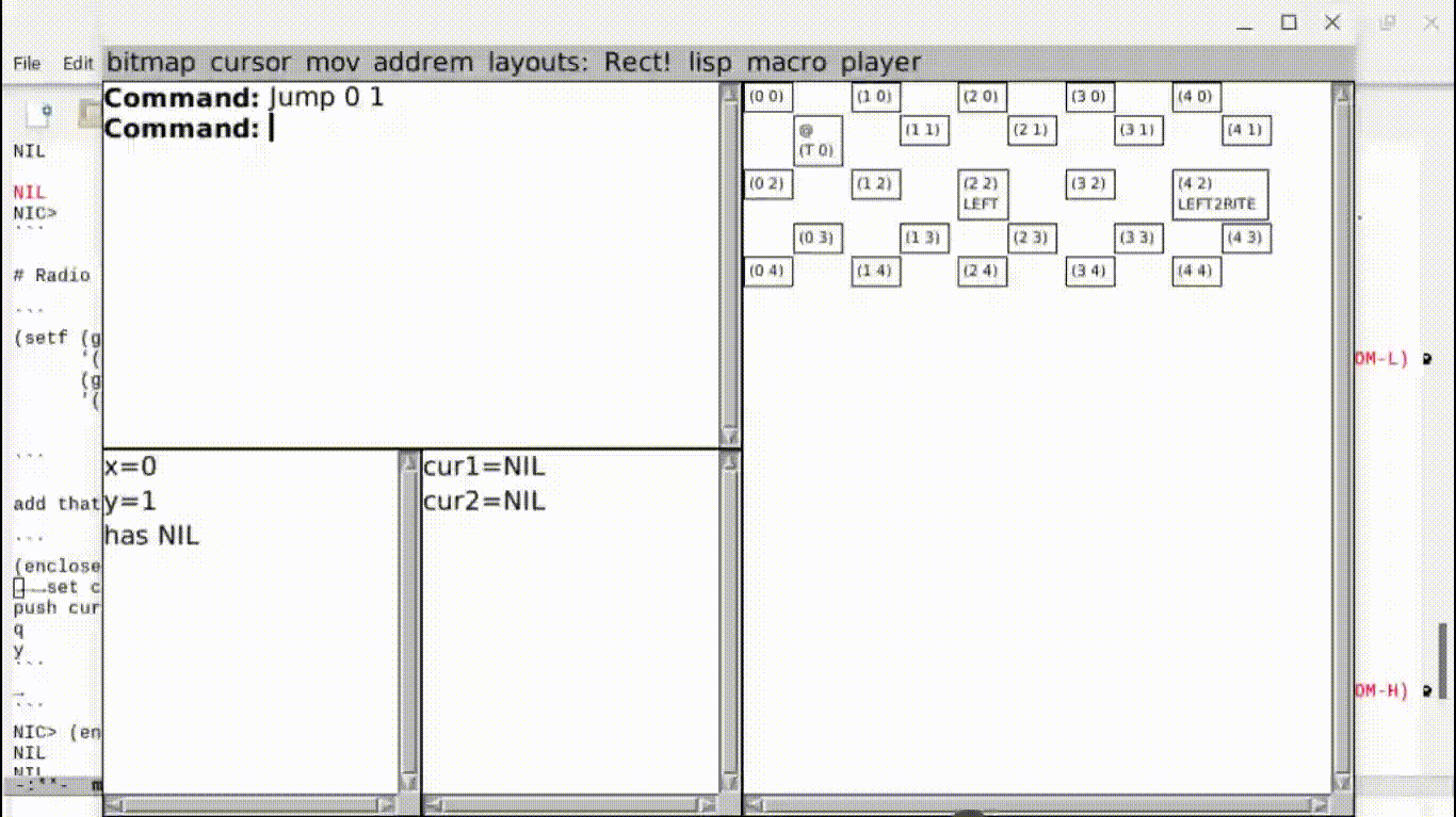 Anyway, this minimal, purely interactive (in the sense of -in-lisp-image) additional level dev part of playing my game jam is seen working. We could stick the :bitmap and :radio-choices in a file like my protracted gamejam instructions, and postpend them to the game jam levels somewhere.