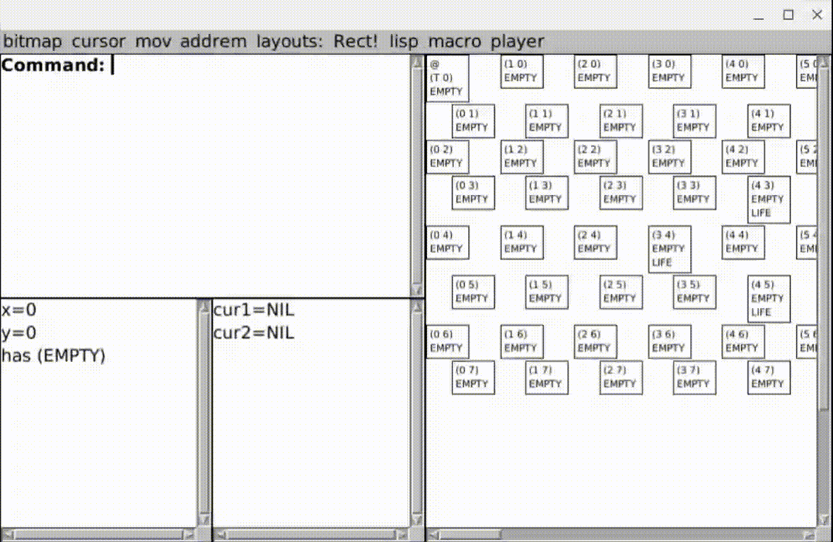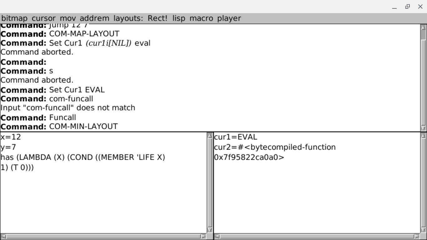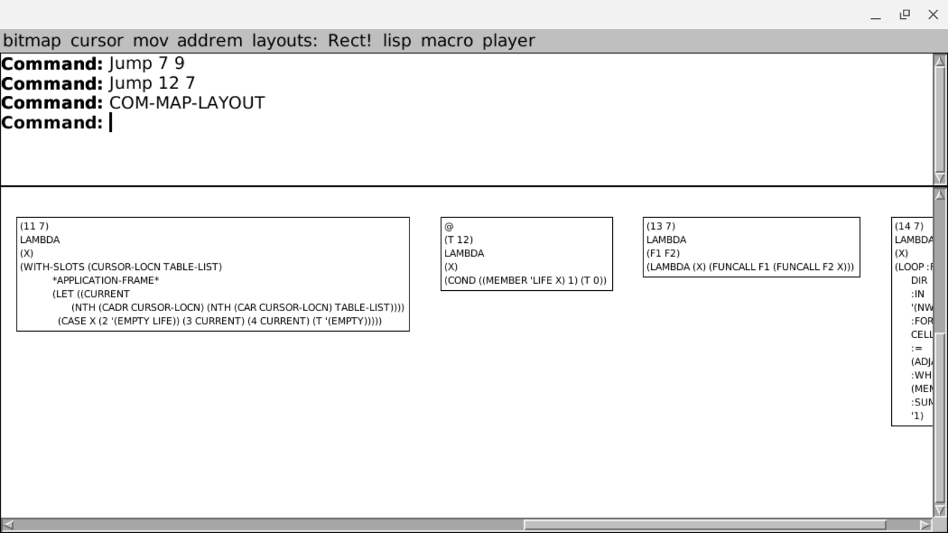 . (Actually, a map editor command named com-eval) in practice, where we jumped to a live cell in the nascent game-of-life, and funcall